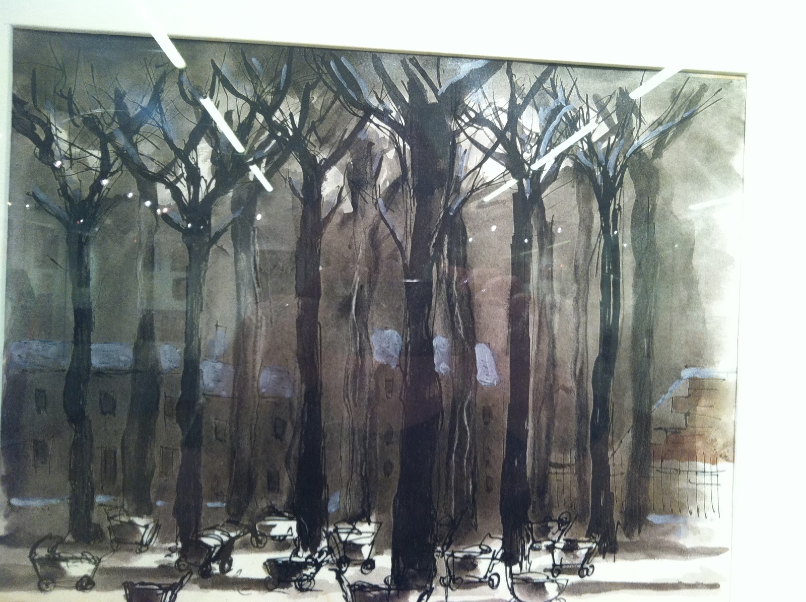 Example of the artwork done in Terezin. Baby buggies in the park. |